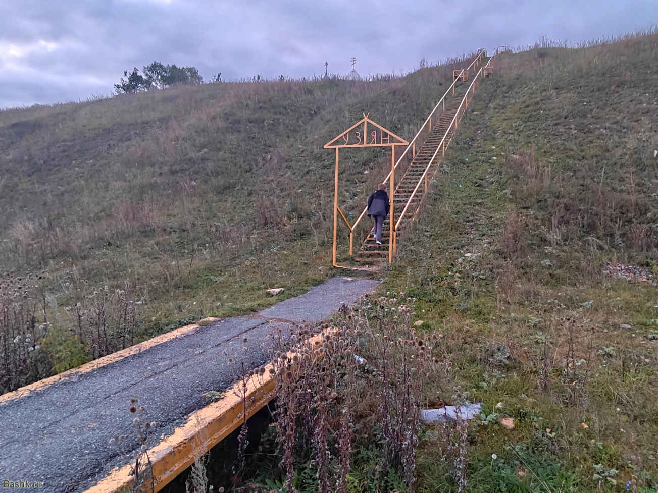 На горе, высотой 500 метров расположенной за домами была установлена стелла в виде надписи «Салауат».