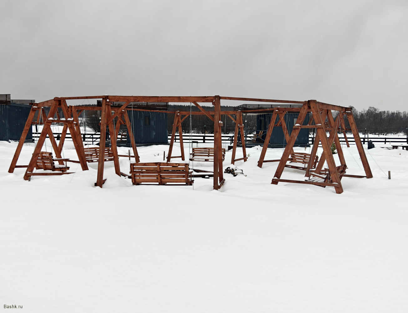 - костровая зона с шестью качелями по кругу;