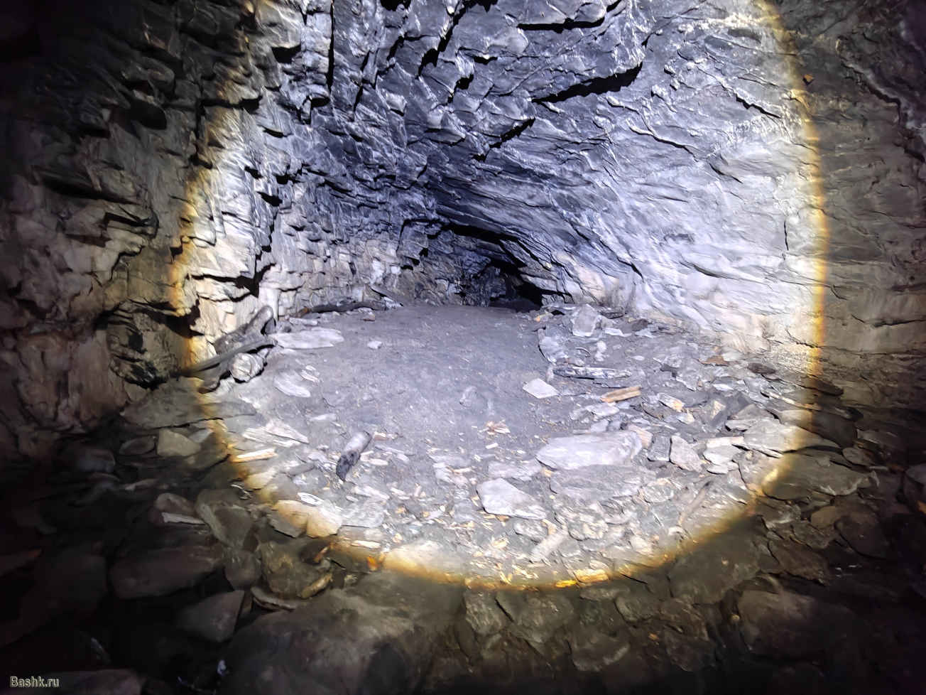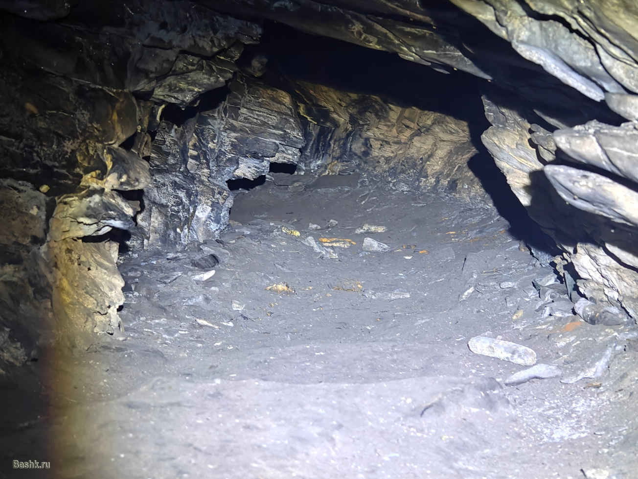 После входа в пещеру будет просторная полость, где можно стоять в полный рост, в левой части коридор устремленный вниз. Коридор постоянно сужается, вначале можно идти пригнувшись, далее на коленках, затем ползком. Внимание: проход по этому коридору представляет реальную опасность для жизни. В проходе можно застрять вниз головой, и даже если удаться протиснуться, то в финале узкого прохода будет глубокий колодец, куда можно упасть — указано на схеме пещеры далее. Именно в этом колодце были найдены кости животных и артефакты древнего мира. На фото далее, можно увидеть вид который открывается с пещеры, здесь протекает горный ручей Каснуй.